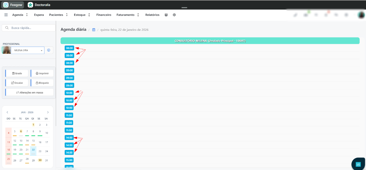 Agenda > Diária >  Grade